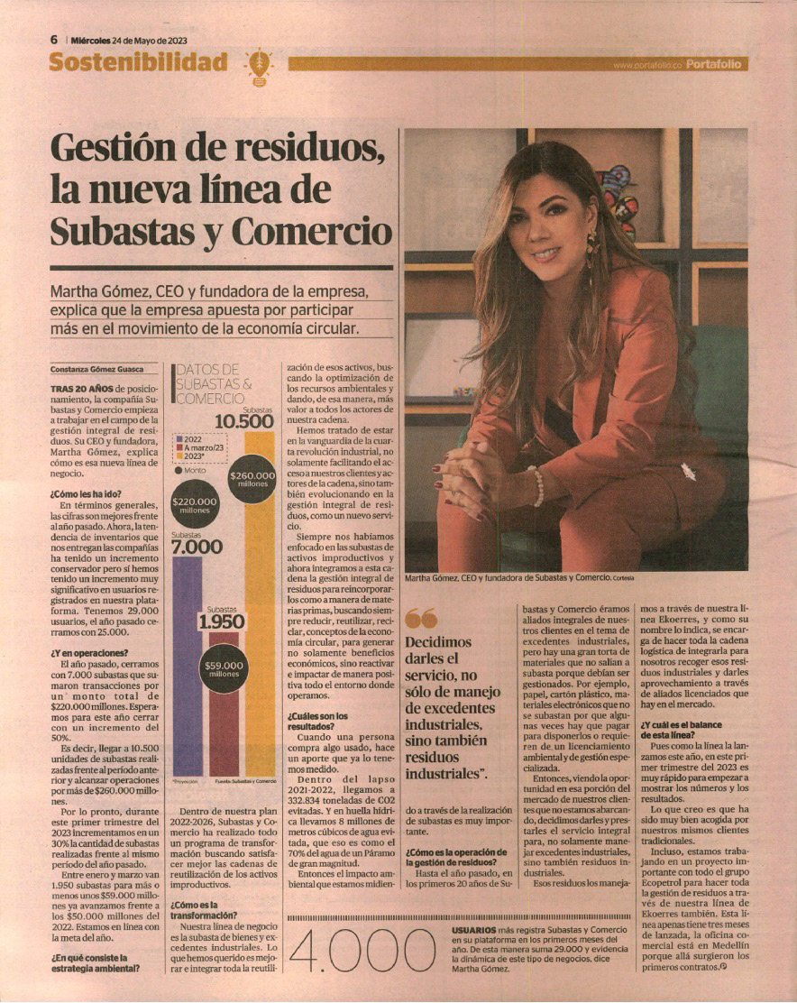 Gestión de residuos, la nueva línea de Subastas y Comercio.
