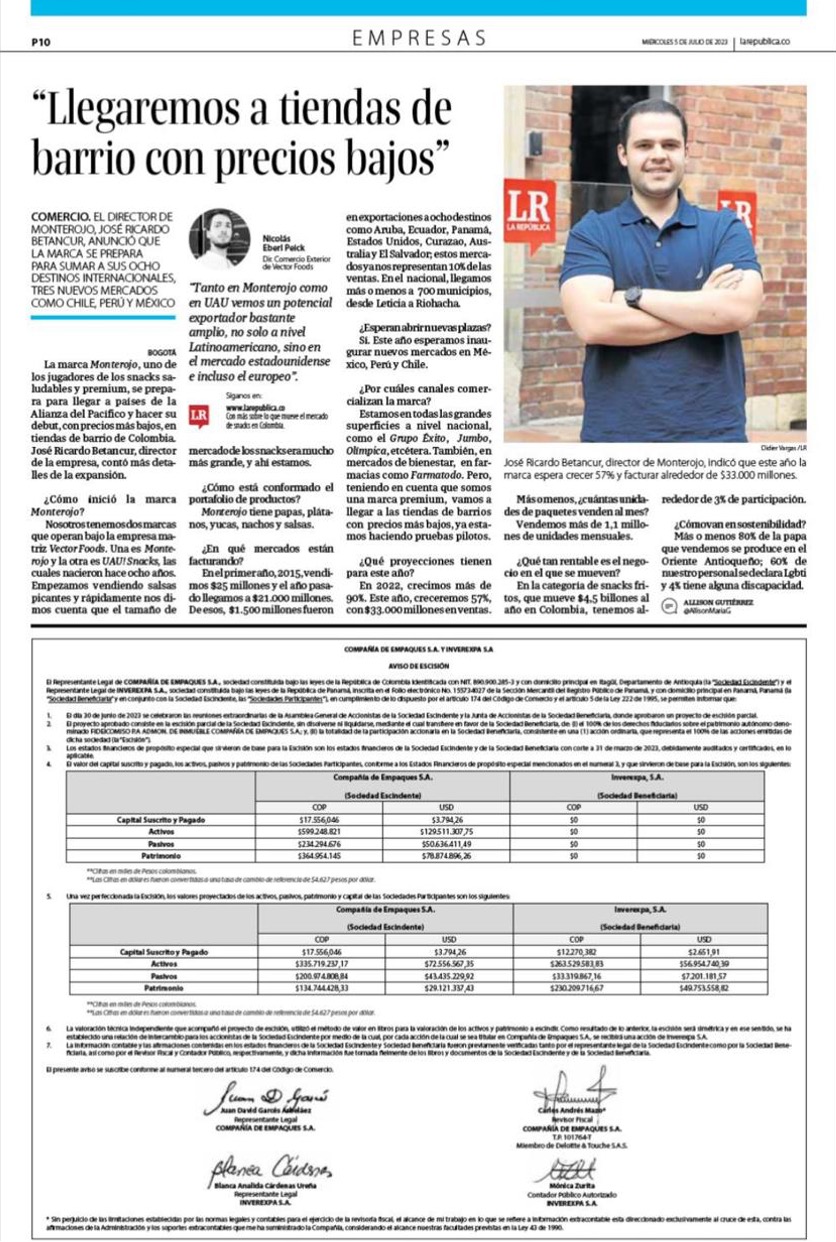 La marca Monterojo, uno de los jugadores de los snacks saludables y premium, se prepara para llegar a países de la Alianza del Pacífico y hacer su debut.