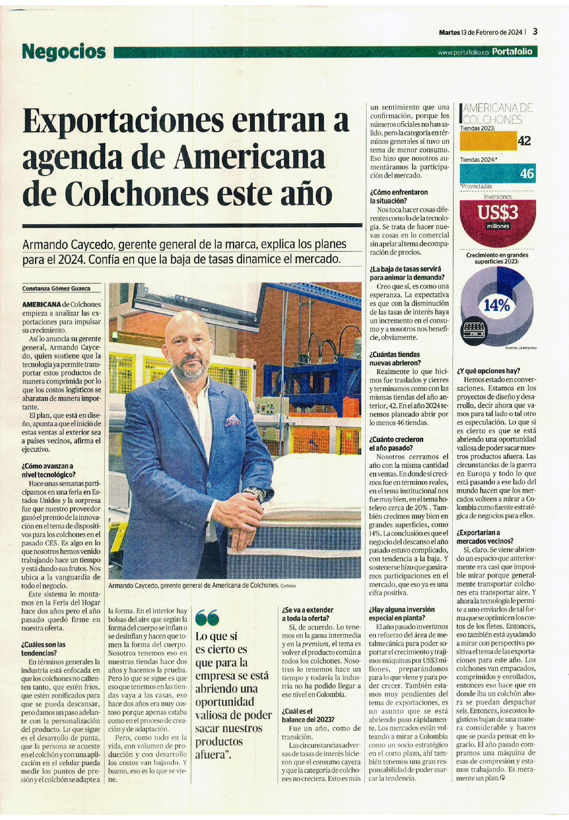 Armando Caycedo Pardo, gerente general de Americana de Colchones, explica la estrategia en marcha con Dormiluna y Serta.