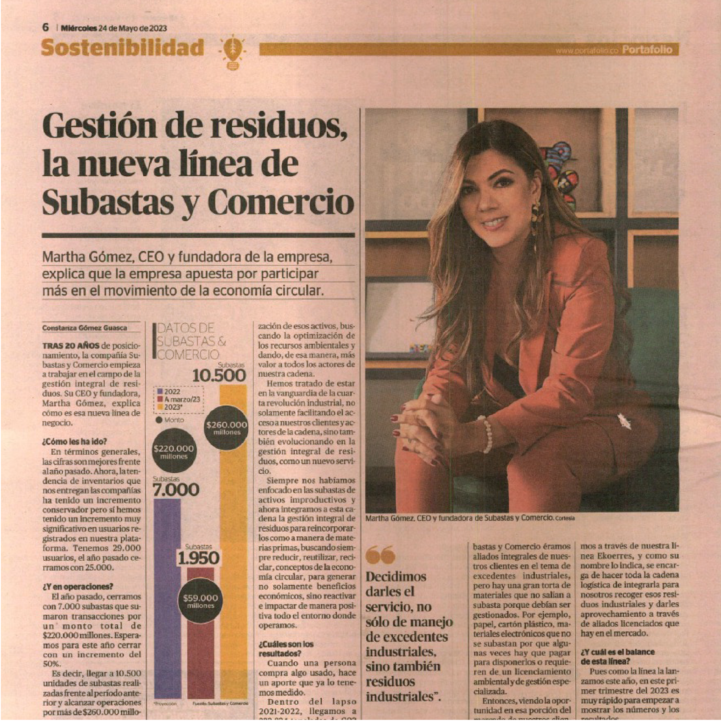 Martha Gómez se graduó de comercio internacional de la Universidad Jorge Tadeo Lozano.Trabajó en varias empresas, pero hace 20 años encontró en la chatarra una oportunidad de negocio.